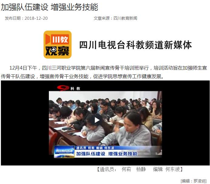 四川电视台科教频道:四川三河职业学院举办第六届新闻宣传骨干培训班