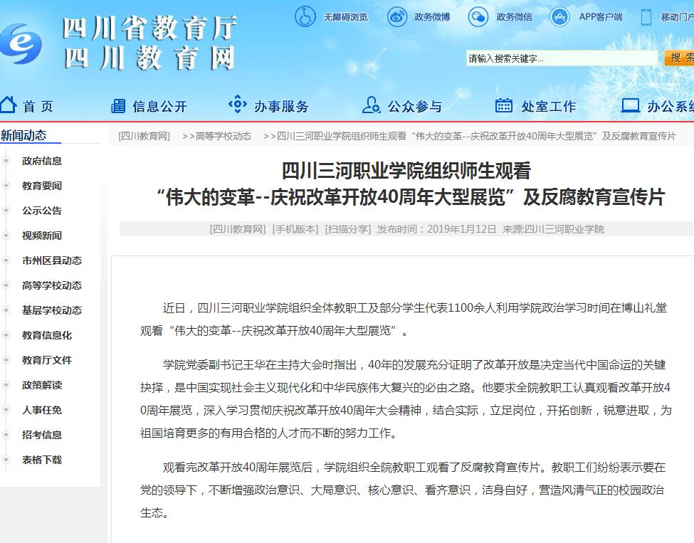 四川省教育厅官网:四川三河职业学院组织师生观看 “伟大的变革--庆祝改革开放40周年大型展览”及反腐教育宣传片