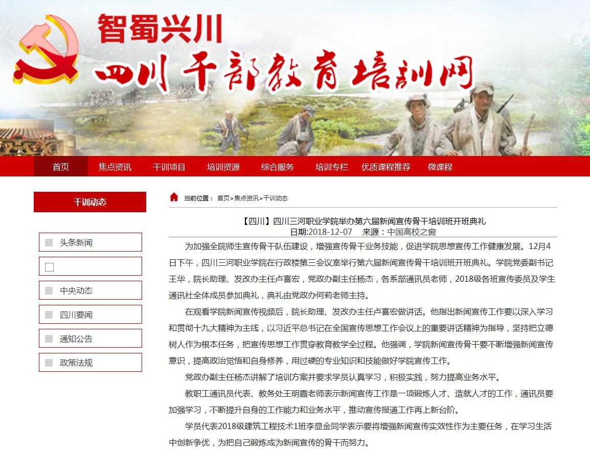 智蜀兴川 四川干部教育培训网:四川三河职业学院举办第六届新闻宣传骨干培训班开班典礼