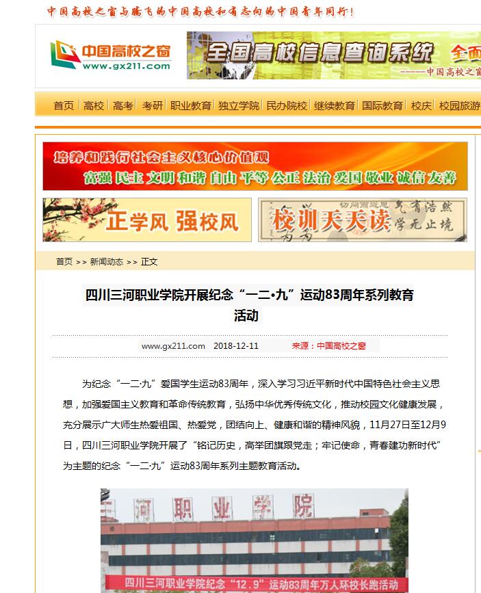 中国高校之窗:四川三河职业学院开展纪念“一二·九”运动83周年系列教育活动