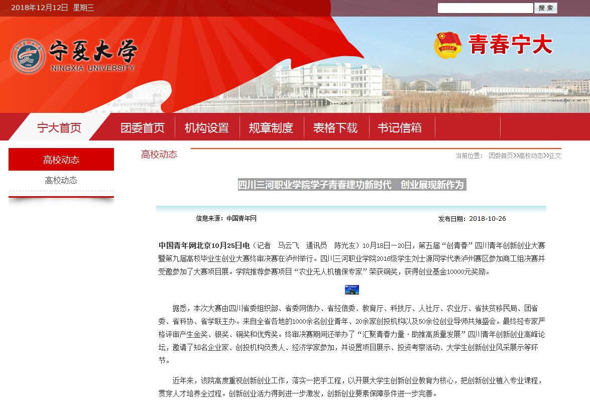 宁夏大学:四川三河职业学院学子青春建功新时代 创业展现新作为