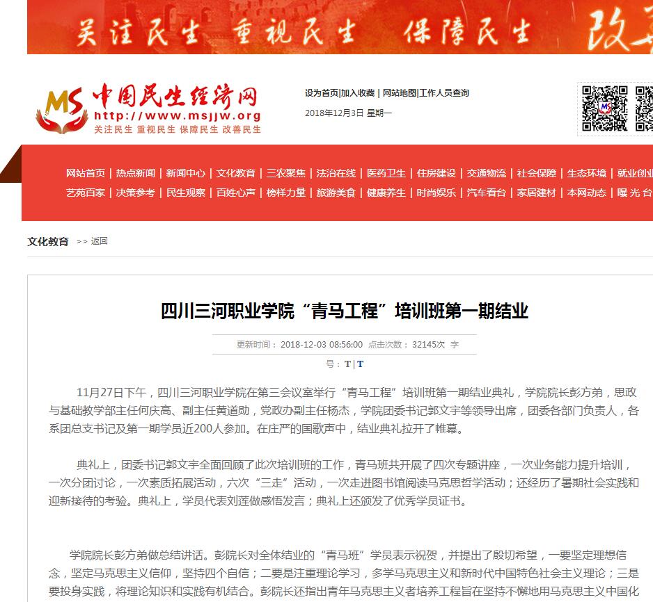 中国民生经济网:四川三河职业学院“青马工程”培训班第一期结业