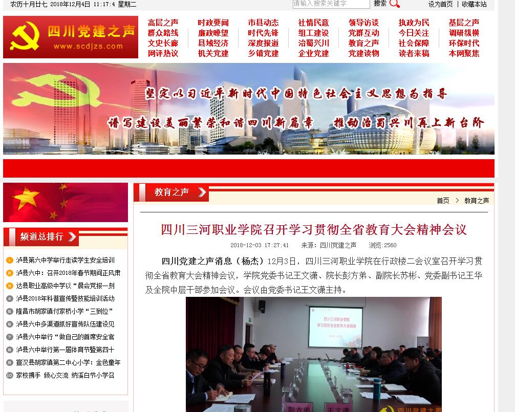 四川党建之声:四川三河职业学院召开学习贯彻全省教育大会精神会议