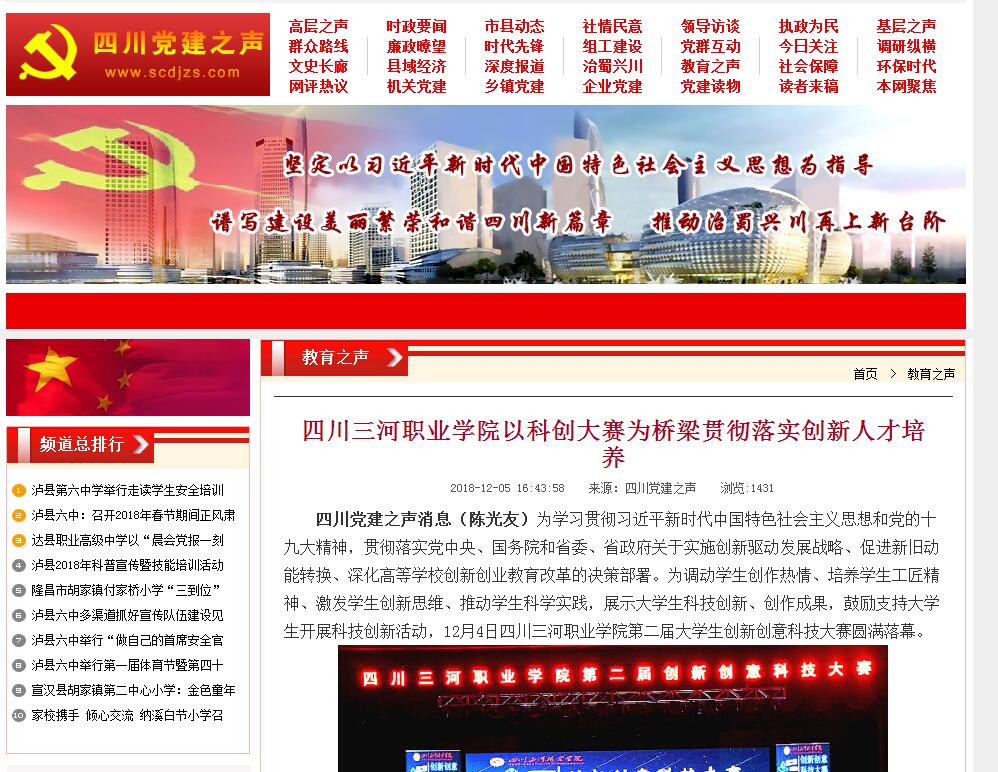 四川党建之声:四川三河职业学院以科创大赛为桥梁贯彻落实创新人才培养