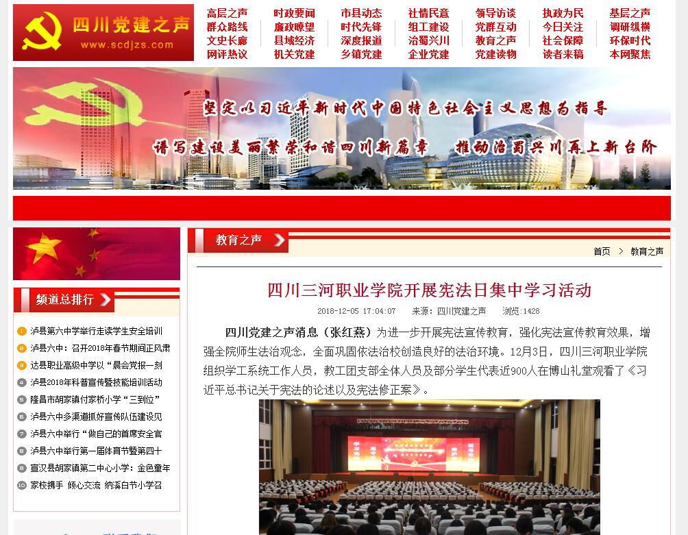四川党建之声:四川三河职业学院开展宪法日集中学习活动