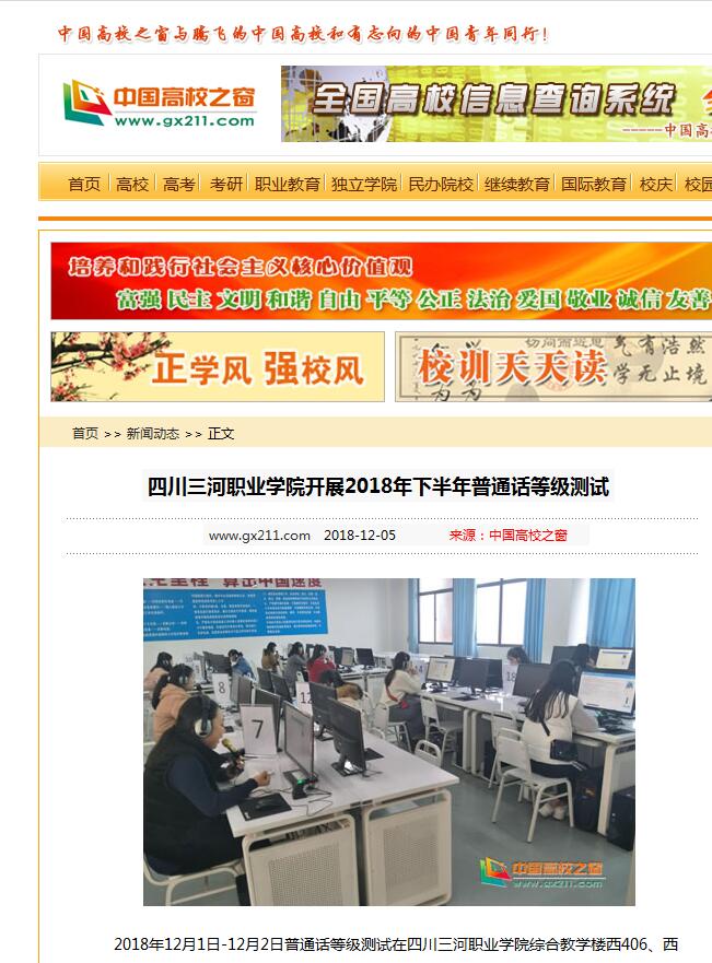 中国高校之窗:四川三河职业学院开展2018年下半年普通话等级测试