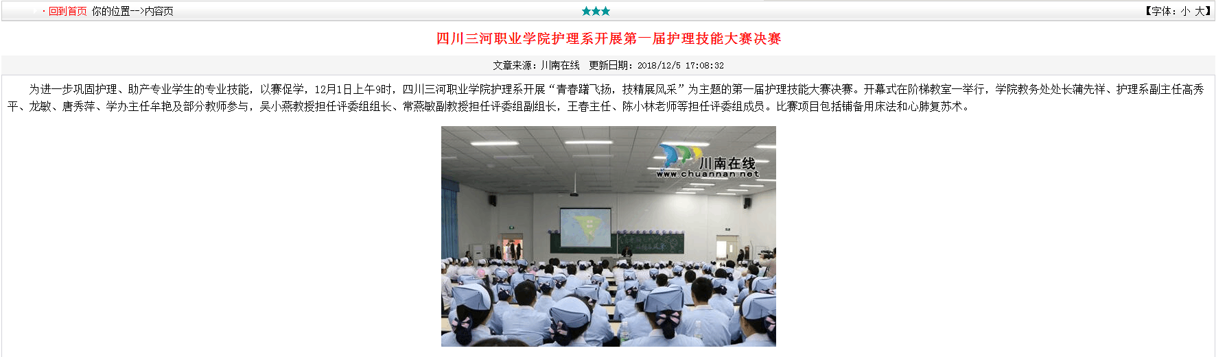 川南在线:四川三河职业学院护理系开展第一届护理技能大赛决赛