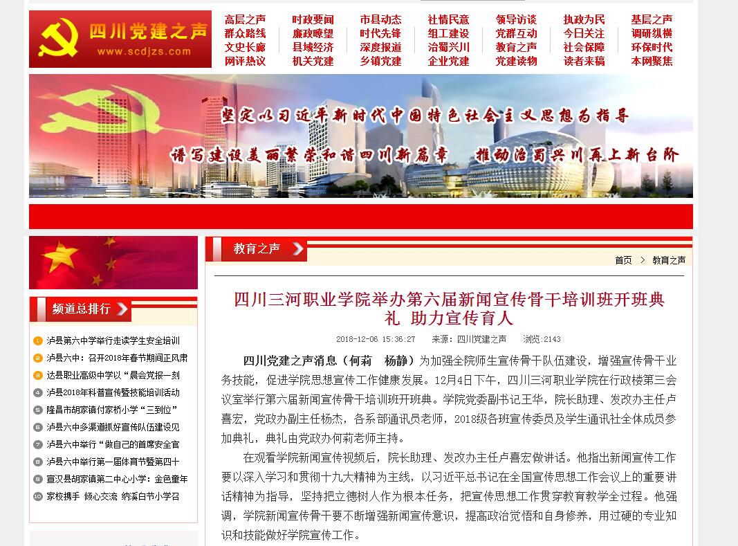 四川党建之声:四川三河职业学院举办第六届新闻宣传骨干培训班开班典礼 助力宣传育人