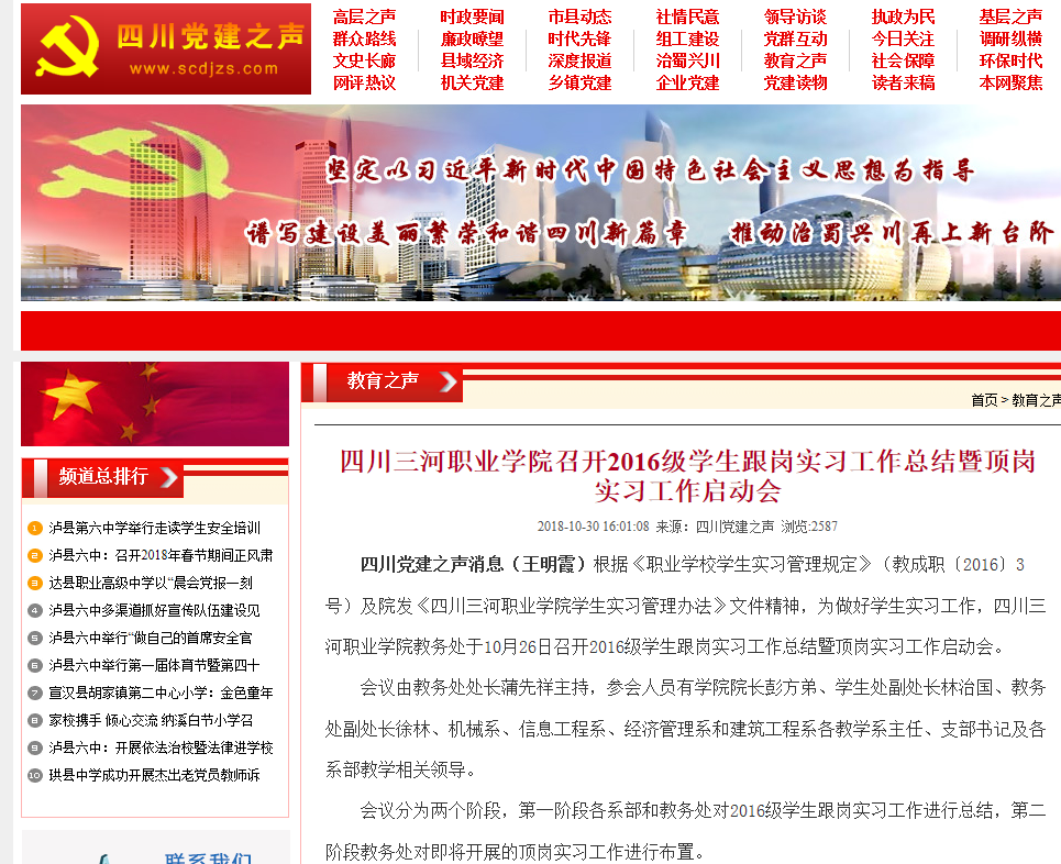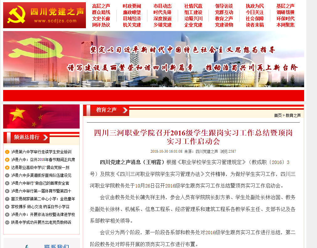 四川党建之声:四川三河职业学院召开2016级学生跟岗实习工作总结暨顶岗实习工作启动会