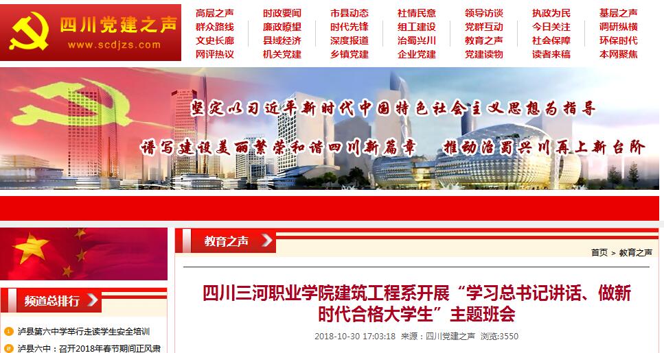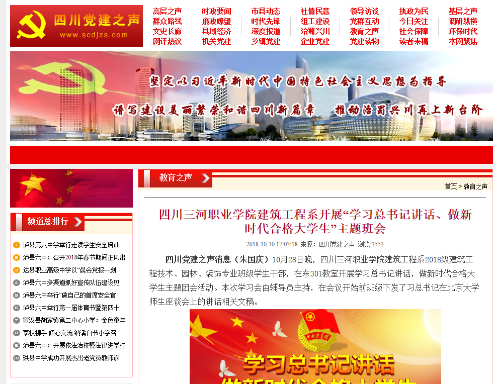 四川党建之声:四川三河职业学院建筑工程系开展“学习总书记讲话、做新时代合格大学生”主题班会