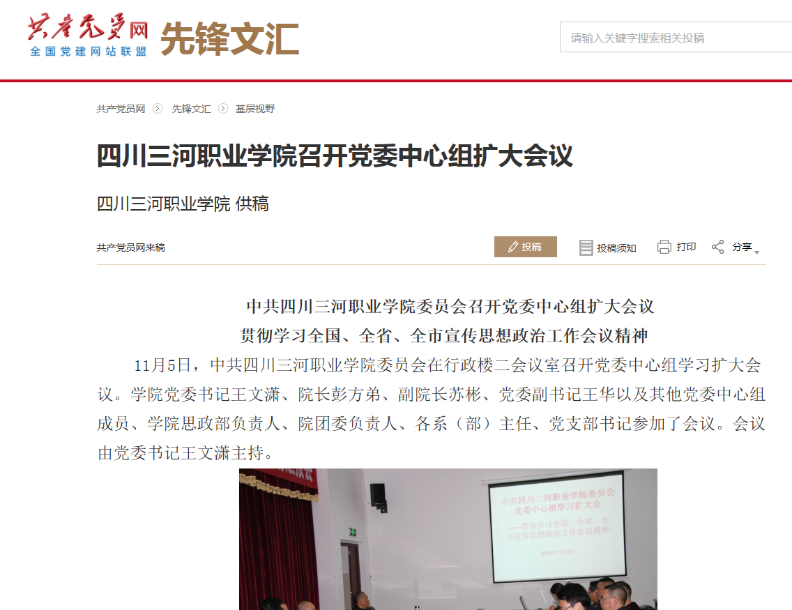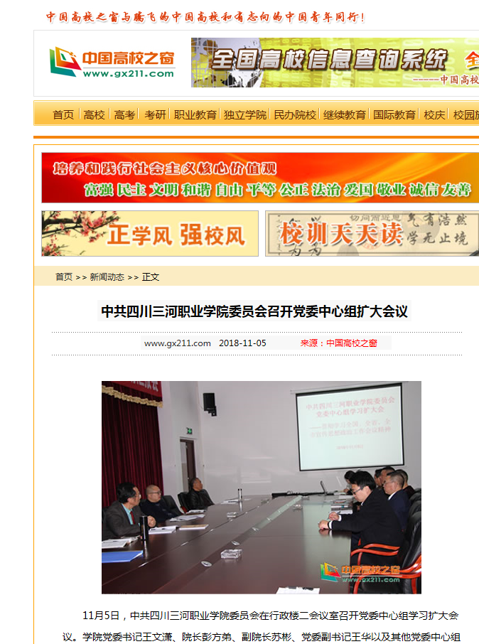 中国高校之窗:中共四川三河职业学院委员会召开党委中心组扩大会议
