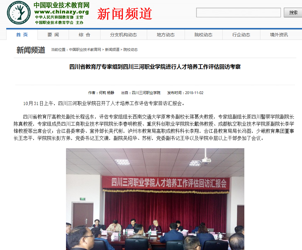 中国职业技术教育网:四川省教育厅专家组到四川三河职业学院进行人才培养工作评估回访考察