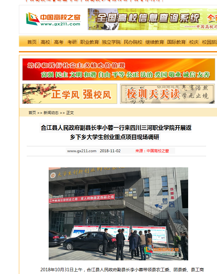 中国高校之窗:合江县人民政府副县长李小蓉一行来四川三河职业学院开展返乡下乡大学生创业重点项目现场调研