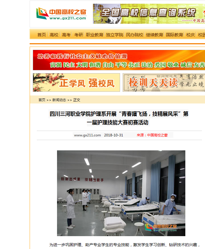 中国高校之窗:四川三河职业学院护理系开展“青春躇飞扬,技精展风采”第一届护理技能大赛初赛活动