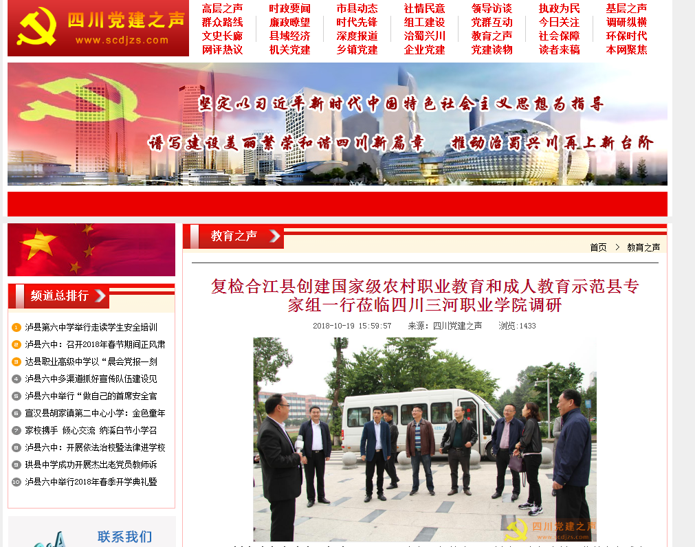 四川党建之声:复检合江县创建国家级农村职业教育和成人教育示范县专家组一行莅临四川三河职业学院调研