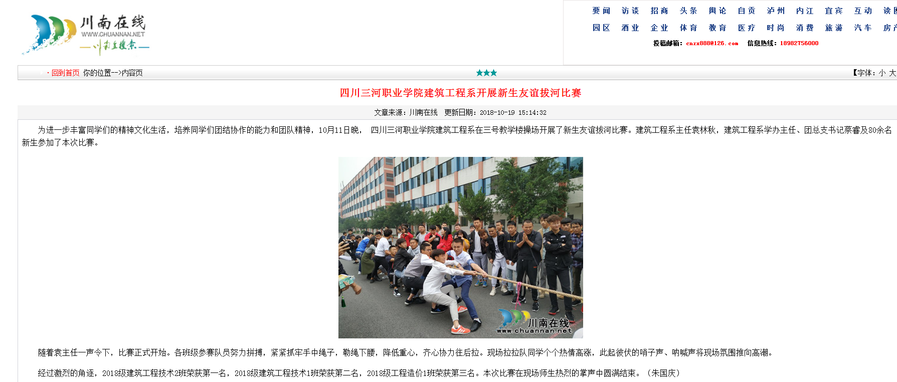 川南在线:四川三河职业学院建筑工程系开展新生友谊拔河比赛