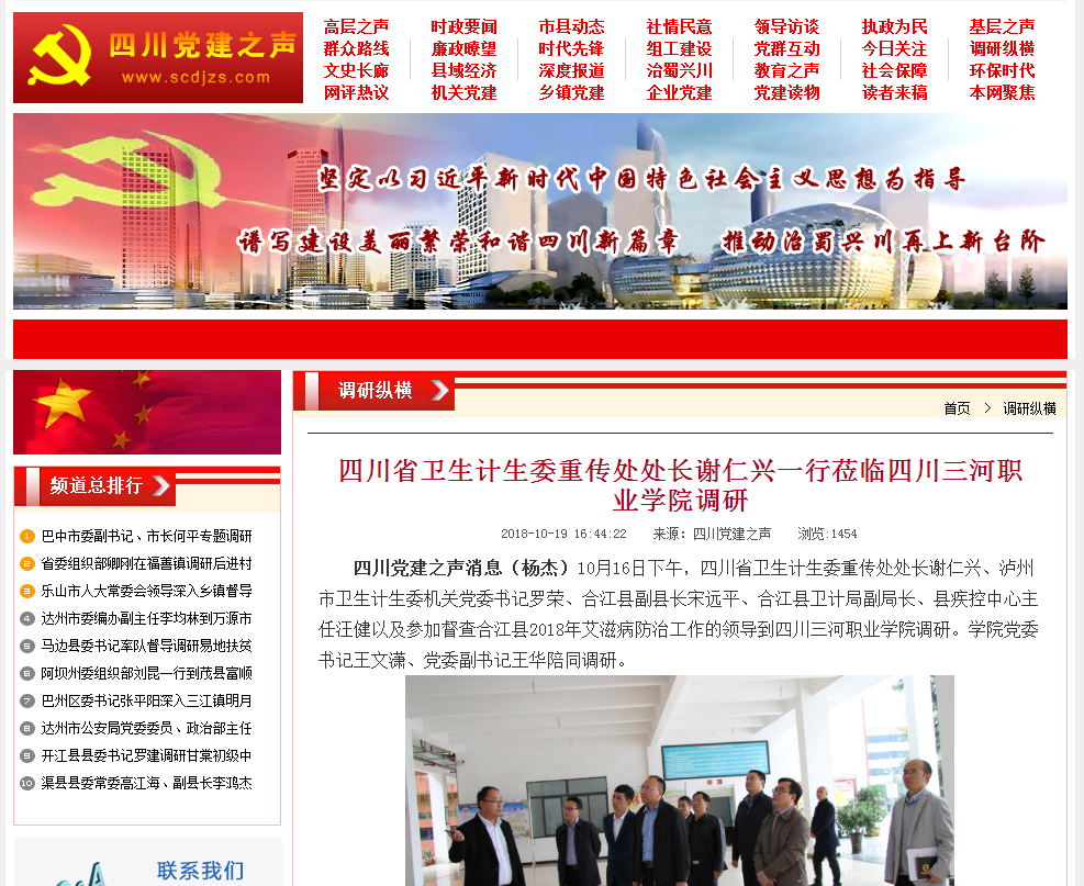 四川党建之声:四川省卫生计生委重传处处长谢仁兴一行莅临四川三河职业学院调研