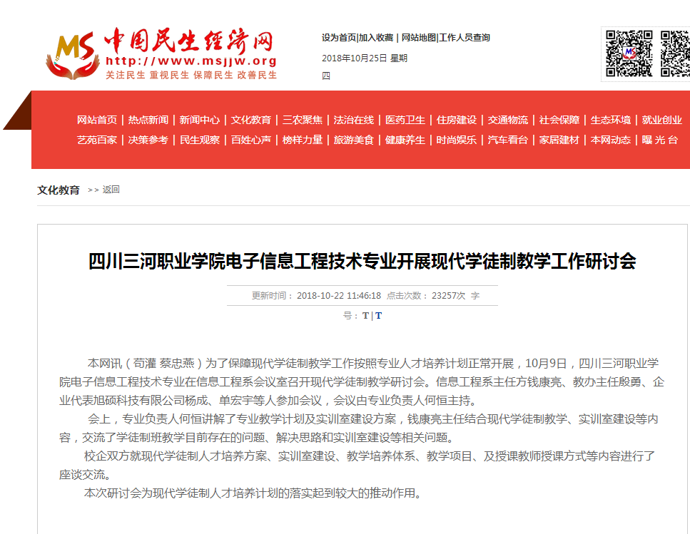中国民生经济网:四川三河职业学院电子信息工程技术专业开展现代学徒制教学工作研讨会