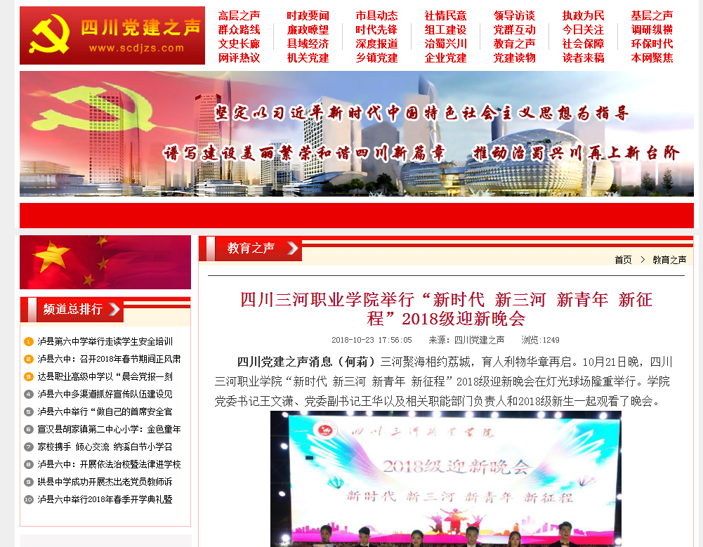 四川党建之声:四川三河职业学院举行“新时代 新三河 新青年 新征程”2018级迎新晚会