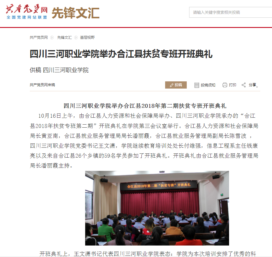 共产党员网:四川三河职业学院举办合江县扶贫专班开班典礼