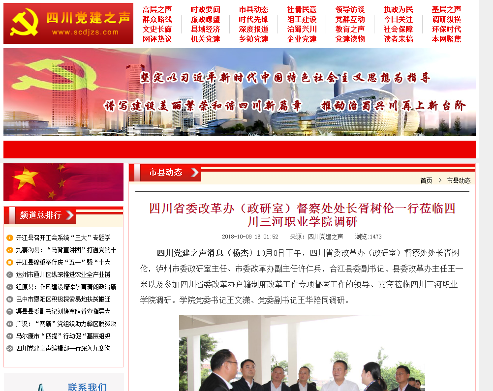 四川党建之声:四川省委改革办(政研室)督察处处长胥树伦一行莅临四川三河职业学院调研