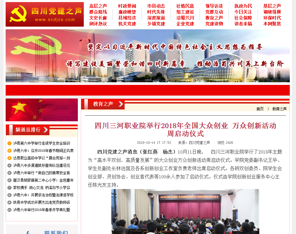 四川党建之声:四川三河职业院举行2018年全国大众创业 万众创新活动周启动仪式