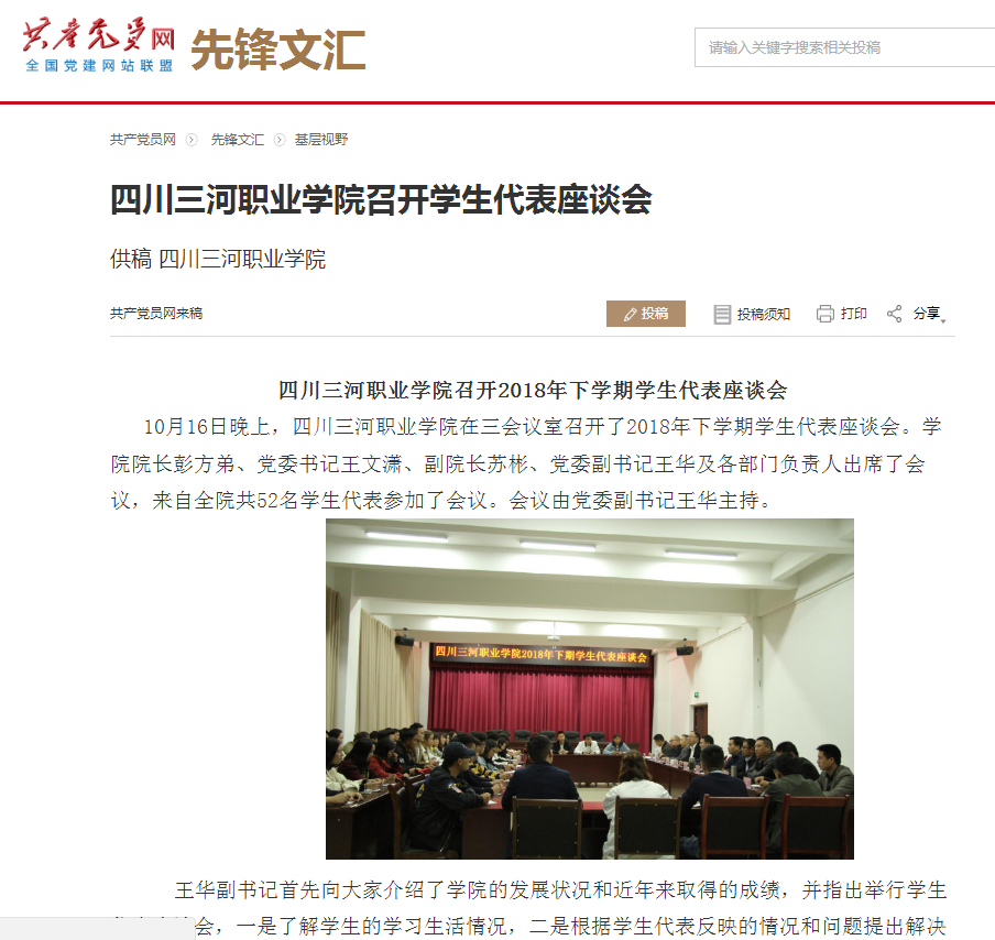 共产党员网:四川三河职业学院召开2018年下学期学生代表座谈会