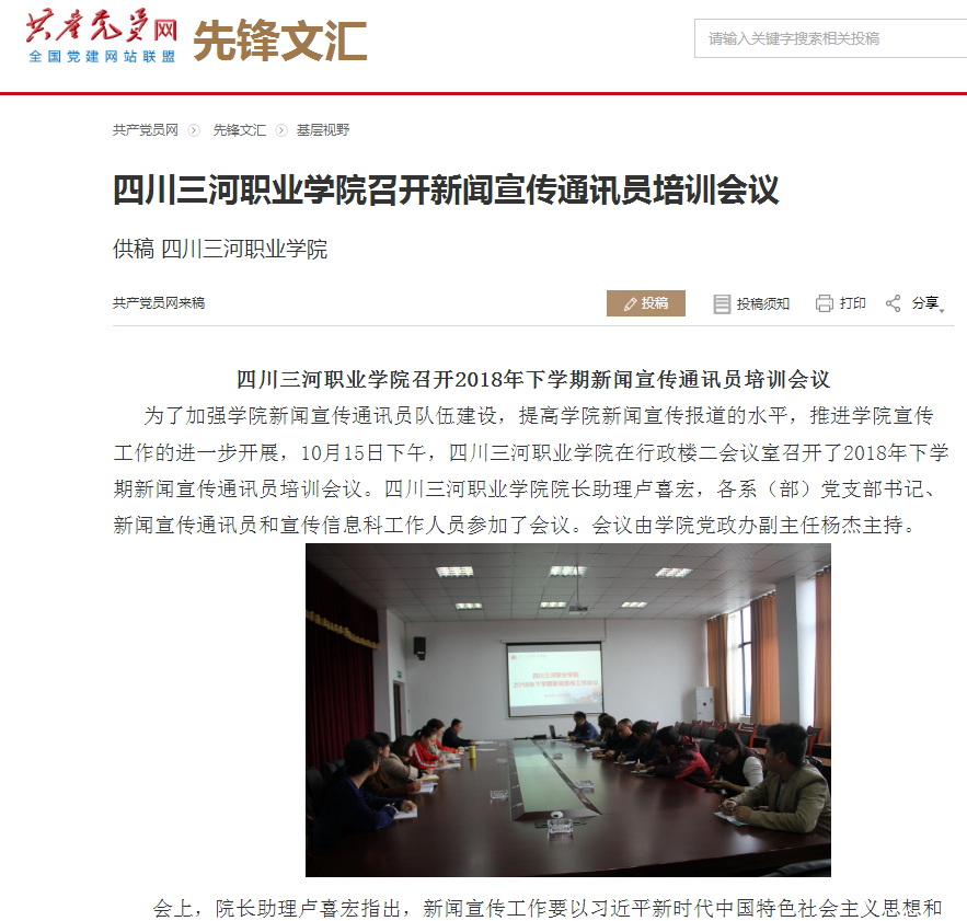 共产党员网:四川三河职业学院召开新闻宣传通讯员培训会议