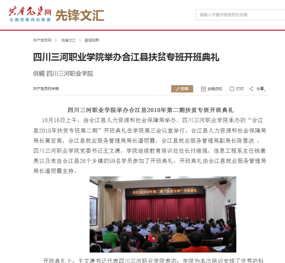 共产党员网:四川三河职业学院举办合江县扶贫专班开班典礼