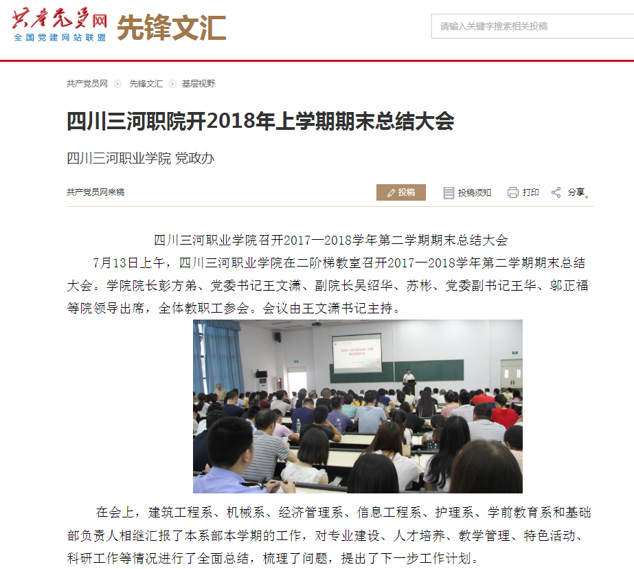 共产党员网:四川三河职院开2018年上学期期末总结大会