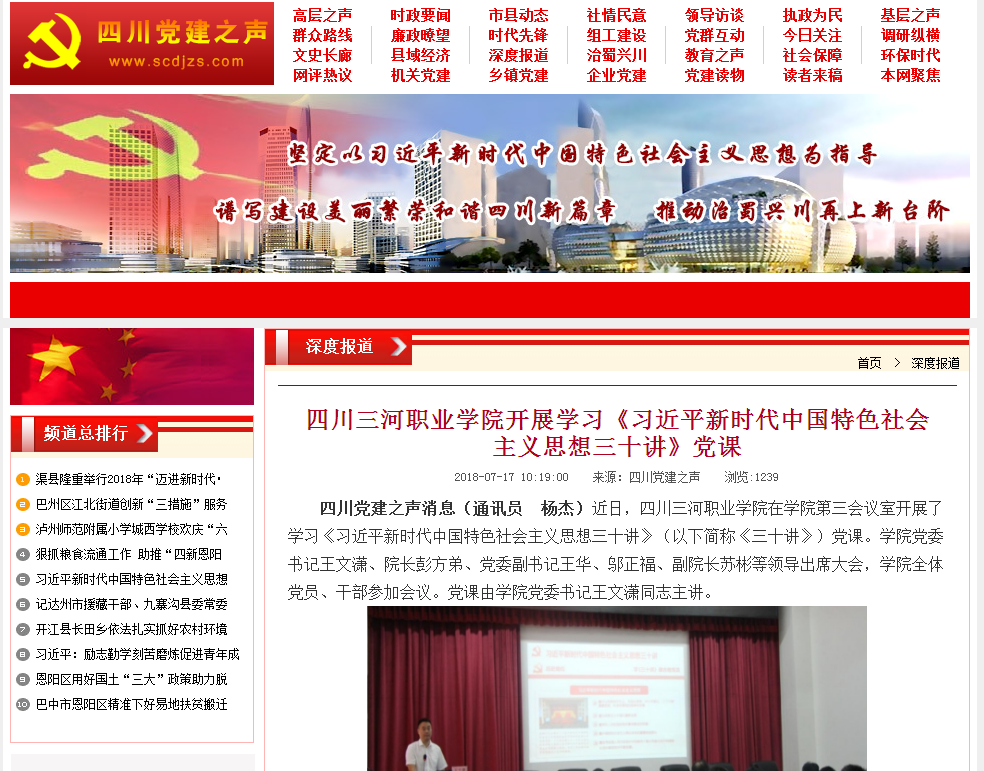 四川党建之声:四川三河职业学院开展学习《习近平新时代中国特色社会主义思想三十讲》党课