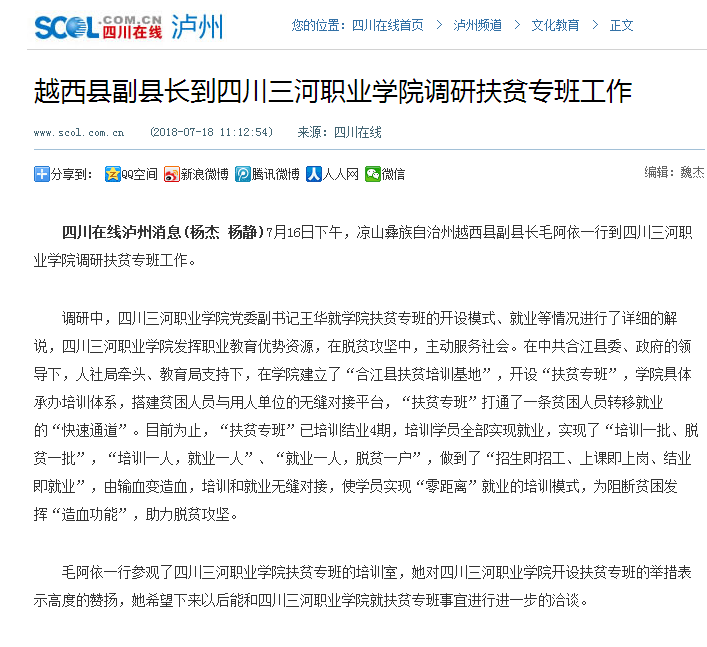 四川在线:越西县副县长到四川三河职业学院调研扶贫专班工作