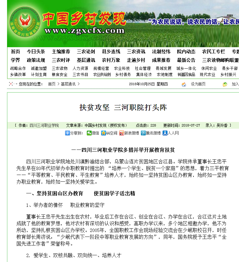 中国乡村发现:扶贫攻坚 三河职院打头阵—四川三河职业学院多措并举开展教育扶贫