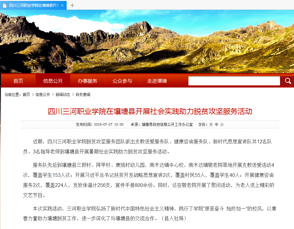 壤塘县人民政府官网:四川三河职业学院在壤塘县开展社会实践助力脱贫攻坚服务活动