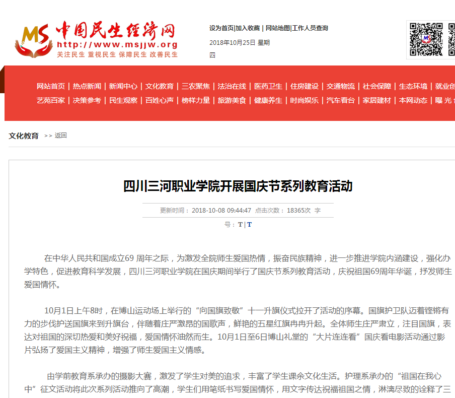中国民生经济网:四川三河职业学院开展国庆节系列教育活动