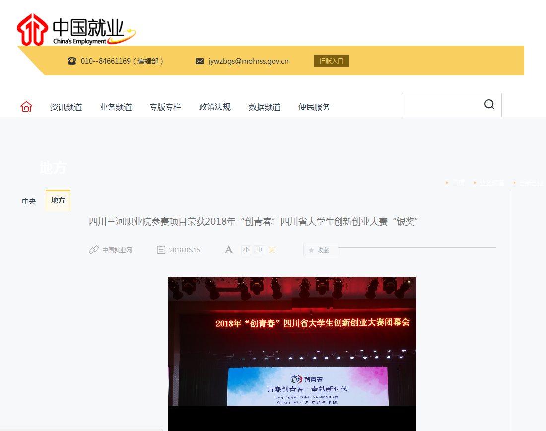 中国就业网:四川三河职业院参赛项目荣获2018年“创青春”四川省大学生创新创业大赛“银奖”