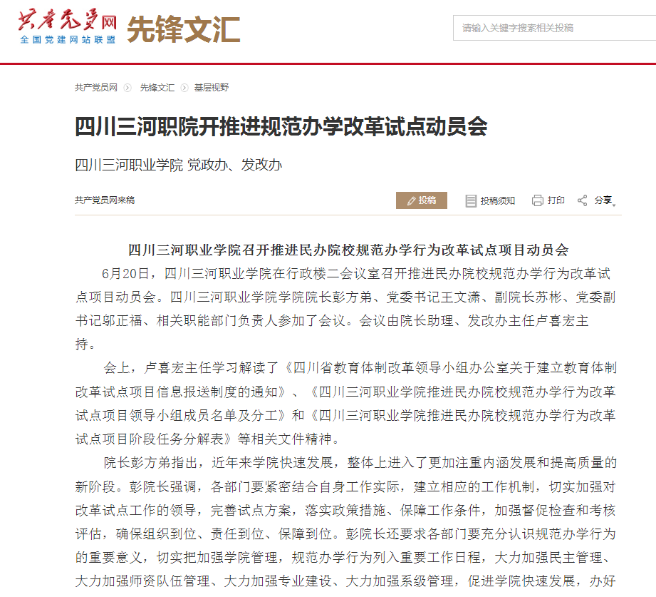 共产党员网:四川三河职院开推进规范办学改革试点动员会