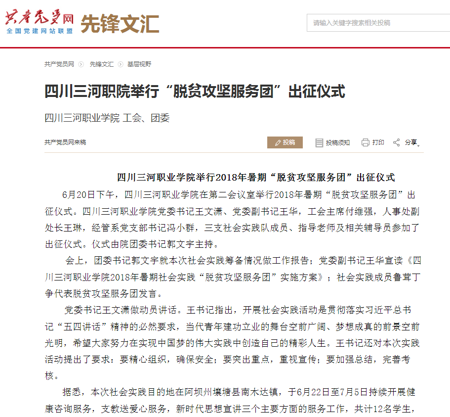 共产党员网:四川三河职院举行“脱贫攻坚服务团”出征仪式