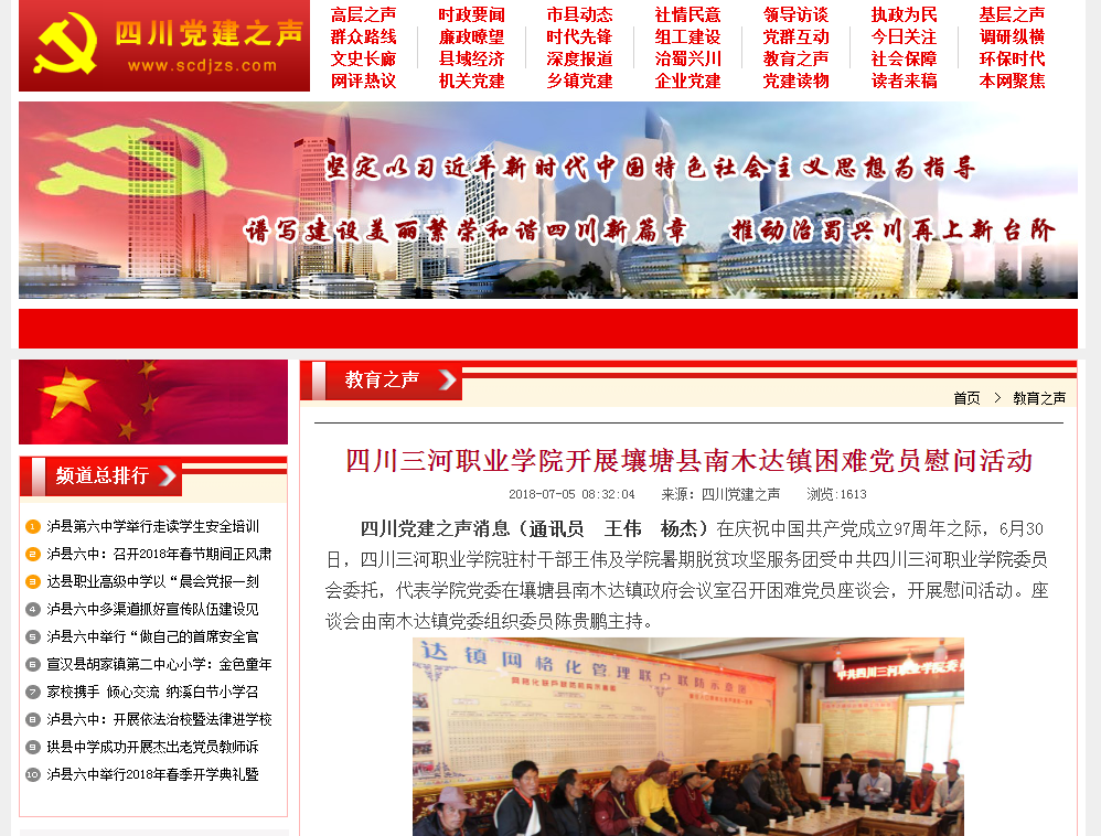 四川党建之声:四川三河职业学院开展壤塘县南木达镇困难党员慰问活动