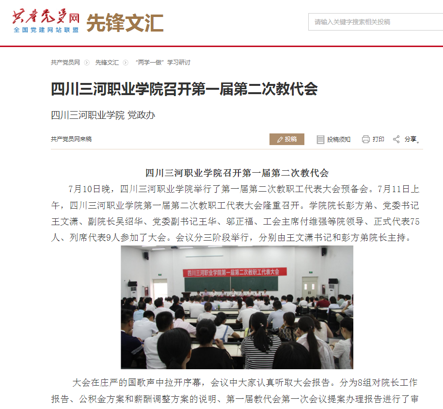 共产党员网:四川三河职业学院召开第一届第二次教代会