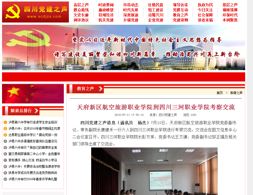四川党建之声:天府新区航空旅游职业学院到四川三河职业学院考察交流