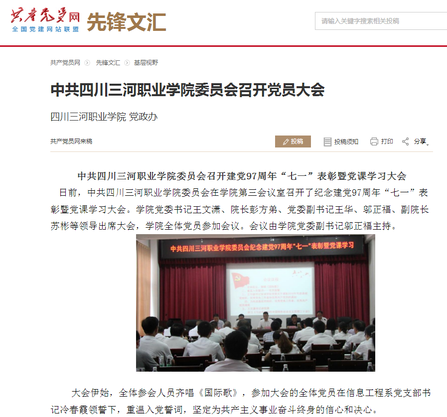 共产党员网:中共四川三河职业学院委员会召开党员大会