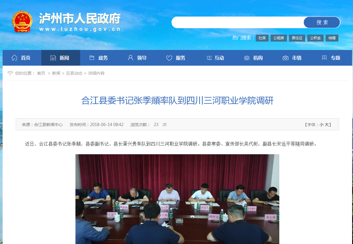 泸州市人民政府官网:合江县委书记张季頫率队到四川三河职业学院调研