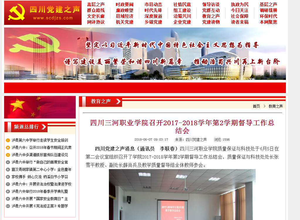 四川党建之声:四川三河职业学院召开2017-2018学年第2学期督导工作总结会