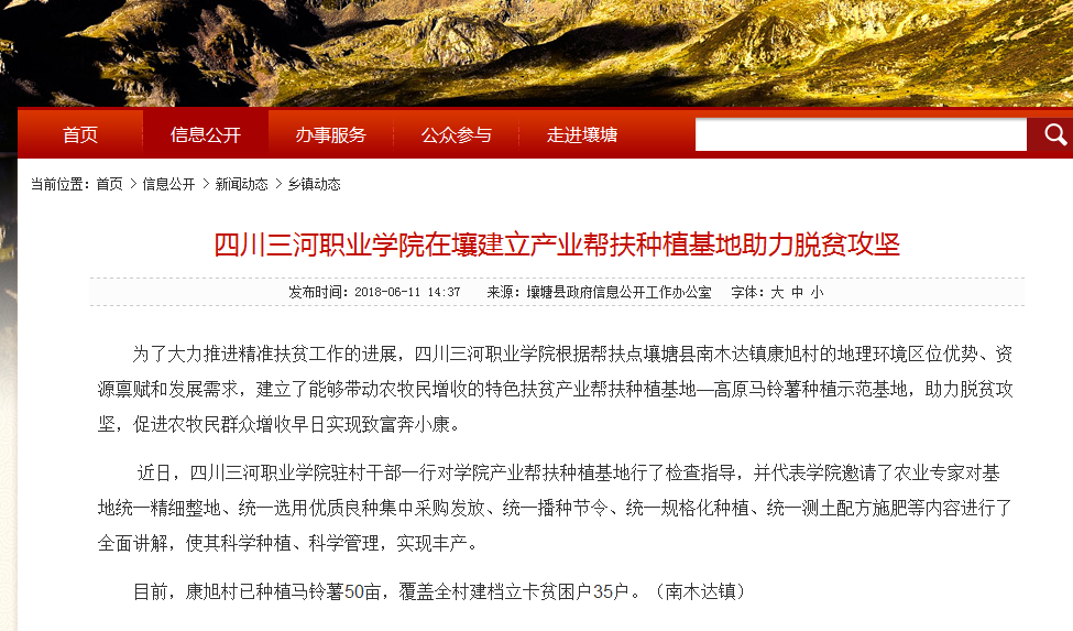四川省教育厅官网:四川三河职业学院建立产业帮扶种植基地 助力脱贫攻坚