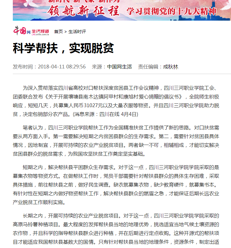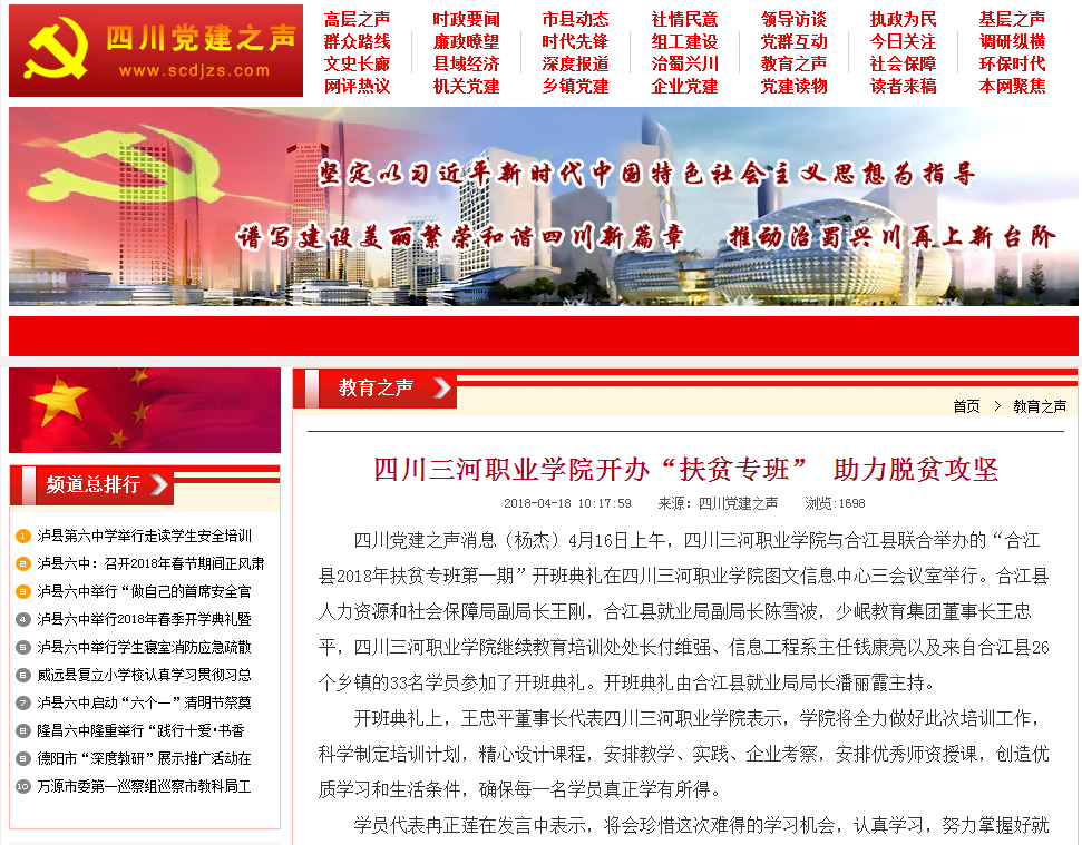 四川党建之声:四川三河职业学院开办“扶贫专班” 助力脱贫攻坚