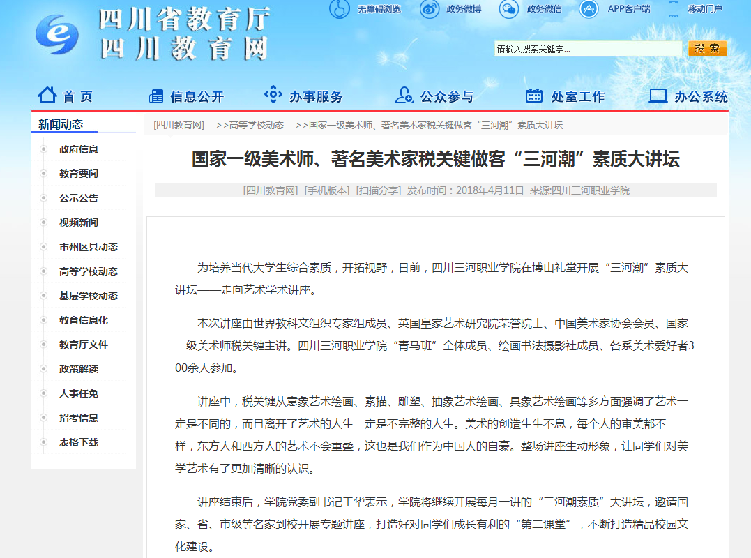 四川省教育厅官网:国家一级美术大师税关键做客“三河潮”素质大讲坛