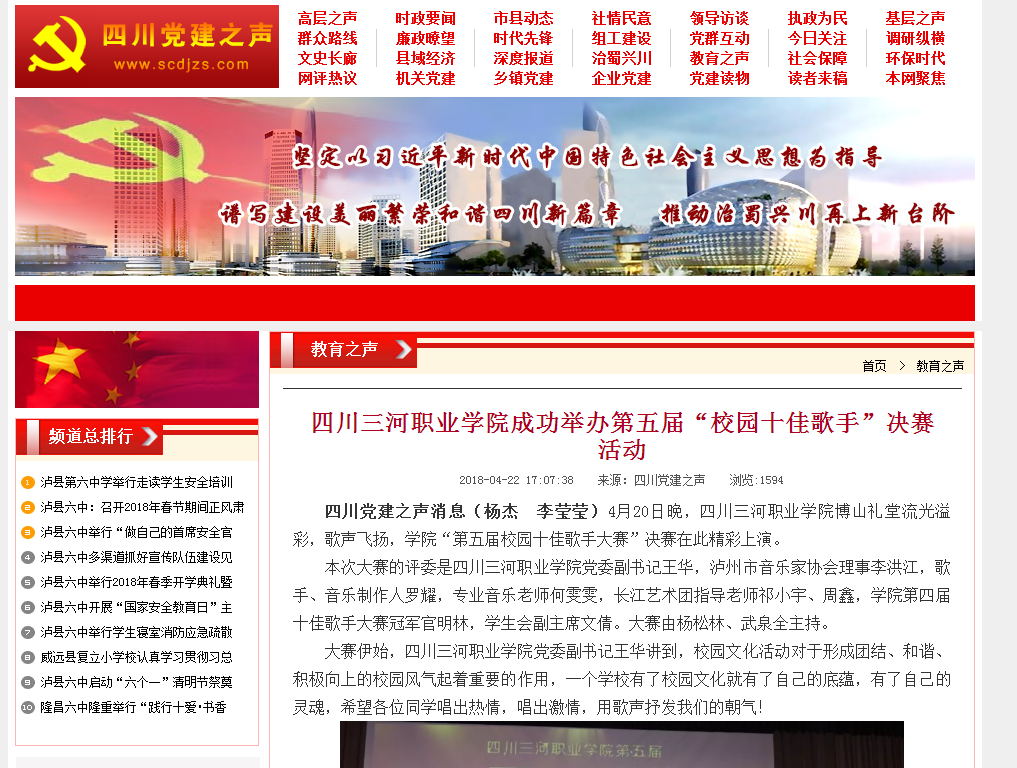 四川党建之声:四川三河职业学院举办第五届“校园十佳歌手”决赛