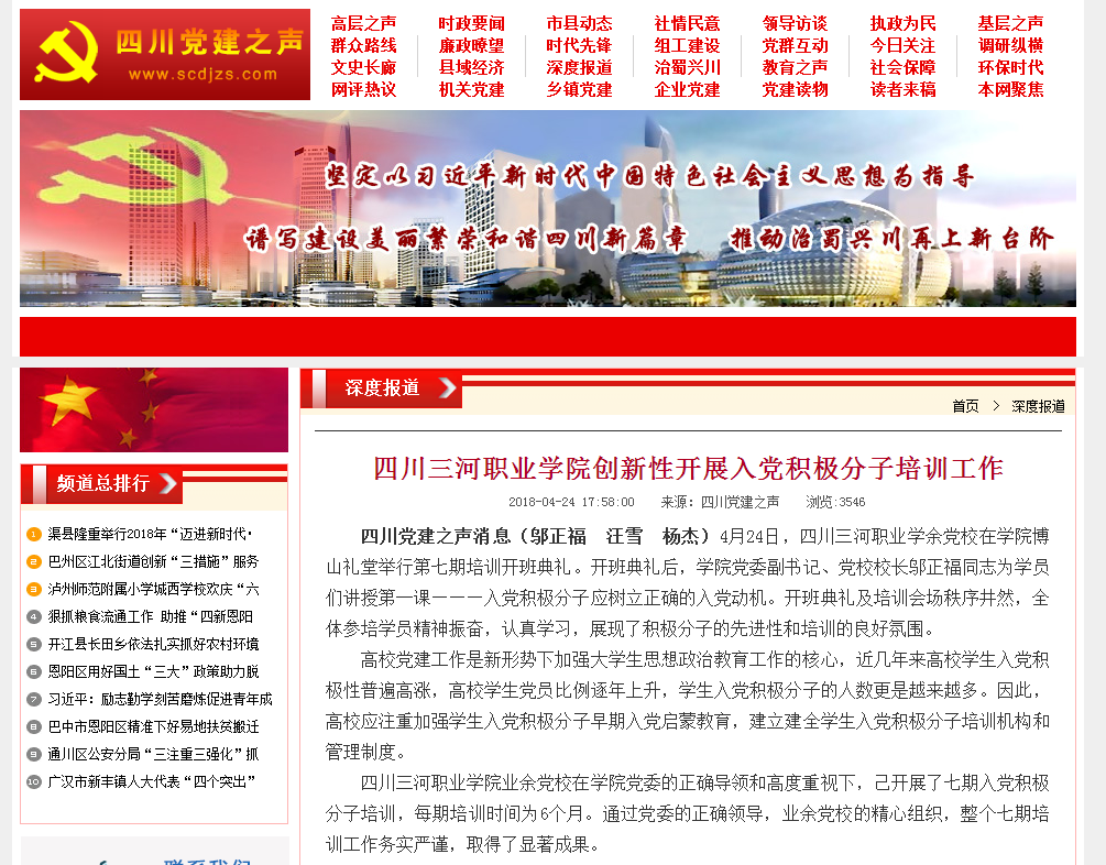 四川党建之声:四川三河职业学院创新性开展入党积极分子培训工作