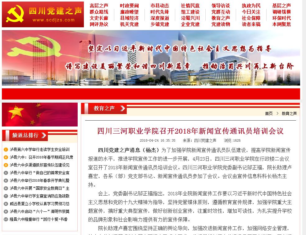 四川党建之声:四川三河职业学院召开2018年新闻宣传通讯员培训会议